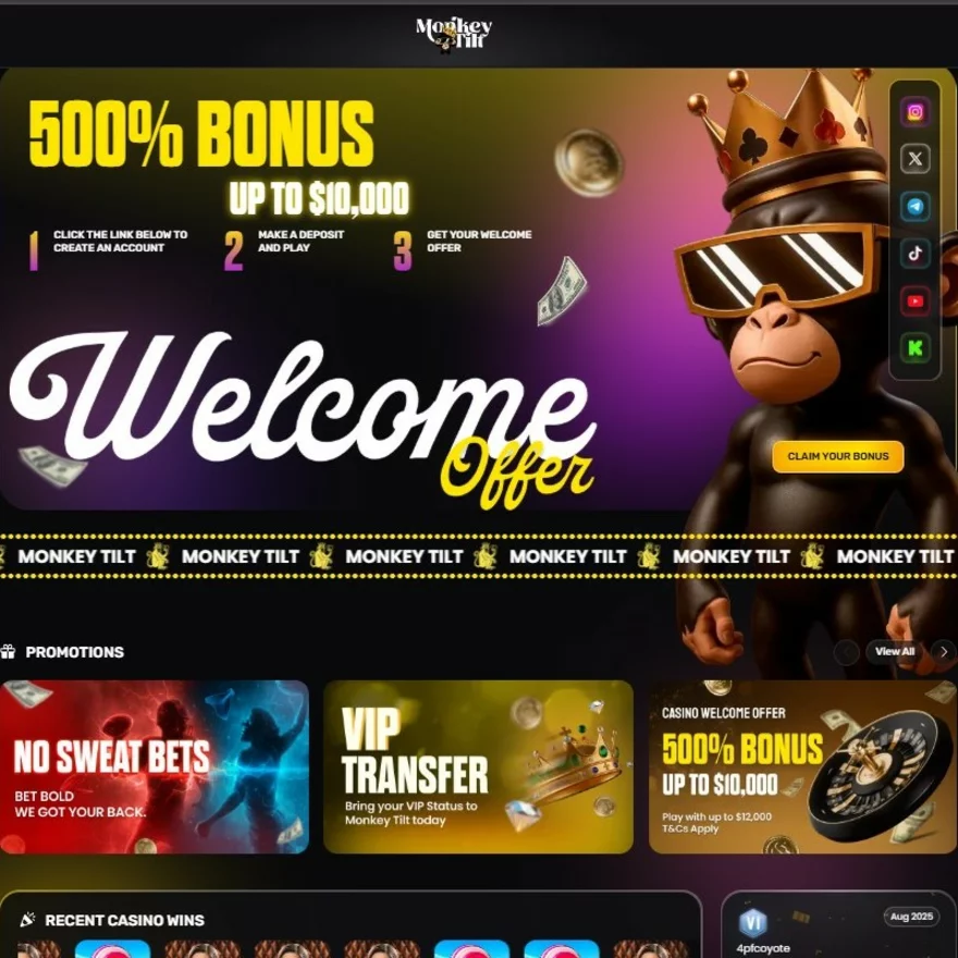 Monkey Tilt Casino is not your usual online casino. In place of sluggish bank transfers and antiquated designs, it is based on cryptocurrency, quick payouts, and enormous bonuses. Because of this, it stands out in a congested industry where many casinos continue to just offer e-wallets and traditional cards. The main goals of Monkey Tilt are quickness, fairness, and larger bonuses than the majority of Australian players are accustomed to.